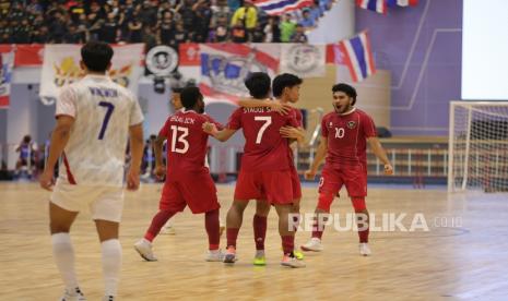 REPUBLIKA.CO.ID, THAILAND — Timnas Futsal Putra Indonesia berhadapan dengan Thailand pada pertandingan final futsal putra Sea Games 2025 di Nonthaburi…