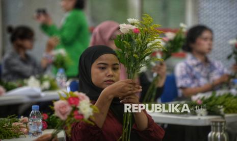REPUBLIKA.CO.ID, JAKARTA — Sejumlah warga mengikuti bimbingan teknis (bimtek) merangkai hand bouquet di Pasar Rawa Belong, Jakarta, Rabu (22/10/2025). Kegiatan…